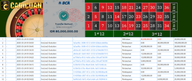 Selamat datang di situs resmi bukti transfer JP CARICUAN. Dibawah ini telah selalu kami update setiap hasil bukti transfer dan game kemenangan dari member setia CARICUAN. Kami ingin memberikan bukti nyata bahwa kami memang benar-benar bandar togel terpercaya Indonesia.