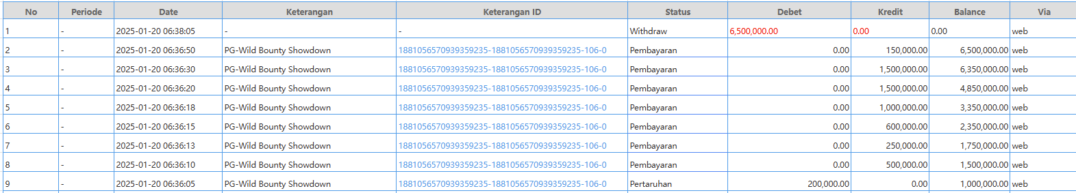 Selamat kepada user id ko*la*ki*23 yang telah JP di permainan Wild Bounty Showdown sebesar Rp. 6,500,000,00-