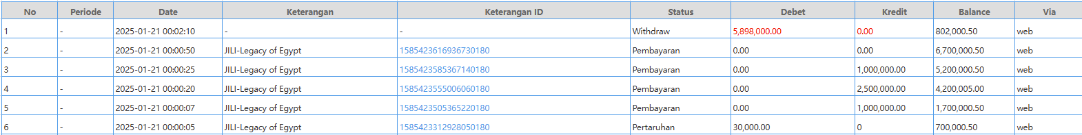 Selamat kepada user id ku*a*ka*ni*n yang telah JP di permainan JILI-Legacy of Egypt sebesar Rp. 5,898,000,00-