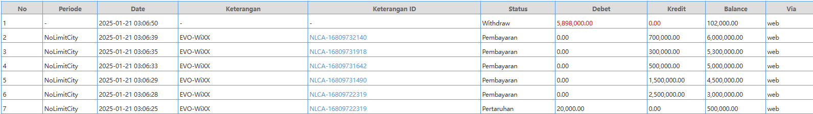 Selamat kepada user id la*gi*nd*a yang telah JP di permainan EVO-WiXX sebesar Rp. 5,898,000,00-