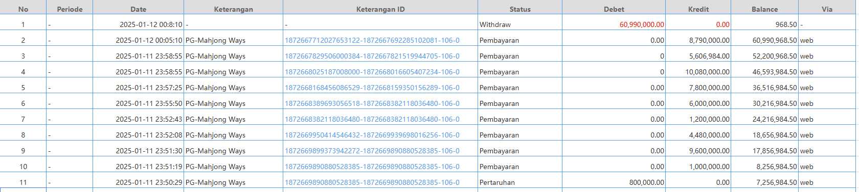 Selamat kepada user id men*n*g* yang telah JP di permainan Mahjong Ways sebesar Rp 60,990,000-