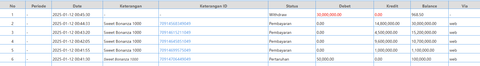 Selamat kepada user id m*g*a23 yang telah JP di permainan Sweet Bonanza 1000 sebesar Rp 30,000,000-