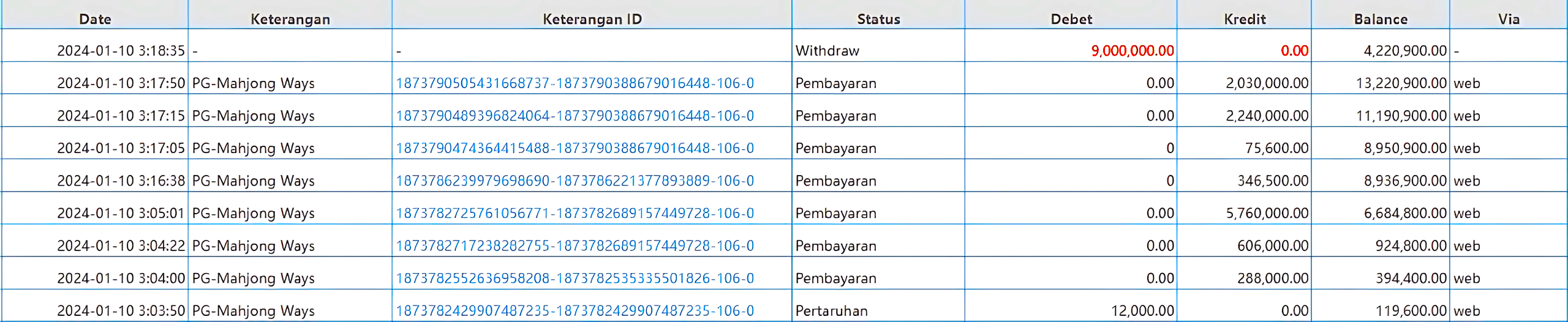 Selamat kepada user id mn*t*p85 yang telah JP di permainan Mahjong Ways sebesar Rp 9,000,000-