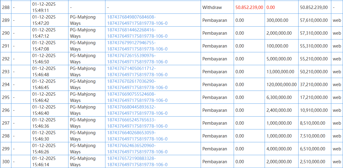 Selamat kepada user id pec*nt*jan*a yang telah JP di permainan MAHJONG WAYS sebesar Rp. 50.852.239,00-